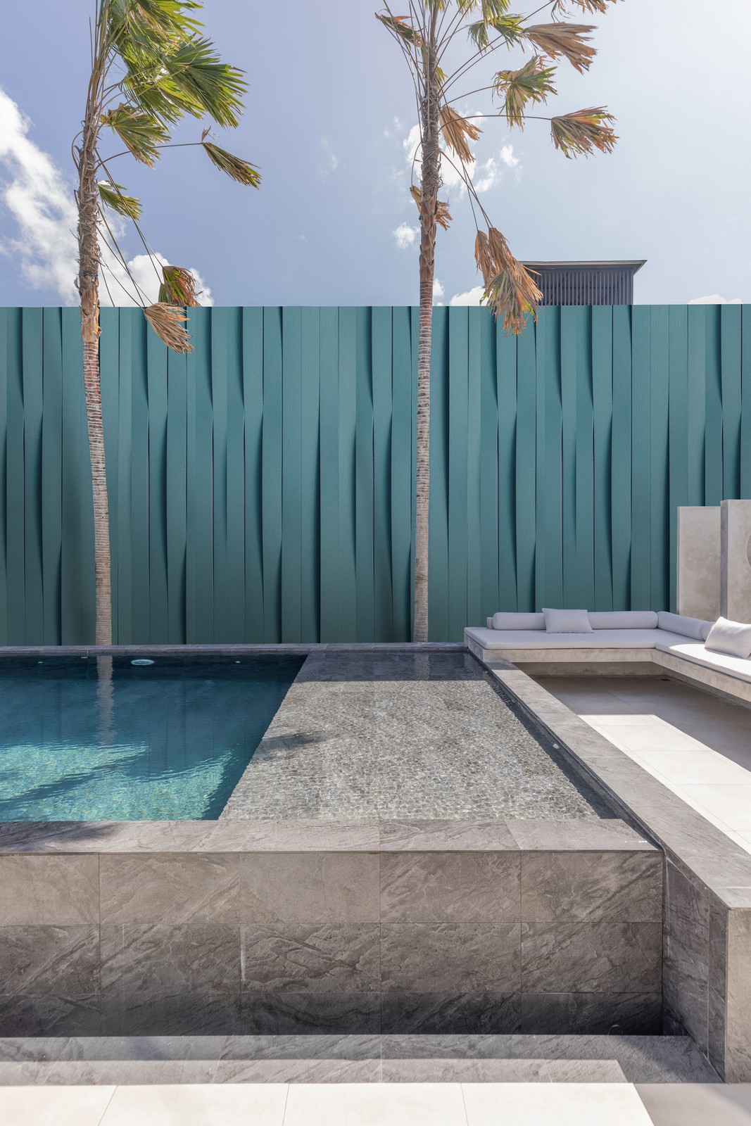 Made-to-measure outdoor wall covering resistant to rain, yellowing and with anti-smog properties.